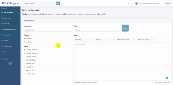 I used voicebrigade to create my voiceovers..and I must tell it was super easy to use. It just took a few minutes and some simple clicks. Even the language and voice options are amazing..what a variety of sounds! Thank you for such an amazing product at this price! This is a huge time saver and friendly on the pocket too. I can’t imagine the time and money I was spending earlier on voice actors. So happy to have found it.